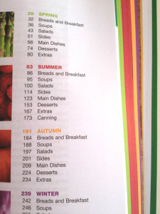 Each season gets a color and recipe pages are coded by that color. Okay, maybe I’m just the OCD-ish person reading this blog, but I really love the organization factor here.